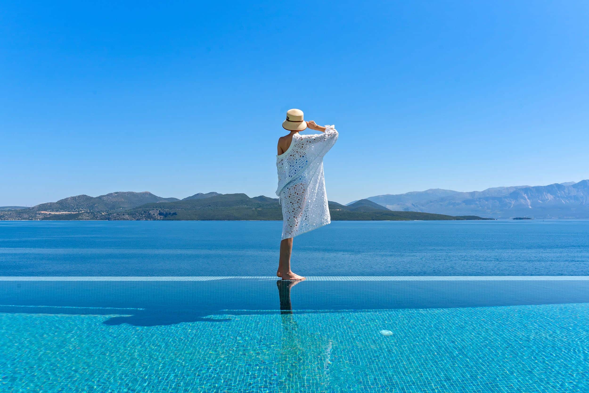 Villa Michaela’s infinity pool provides an immersive experience with the Ionian sea.